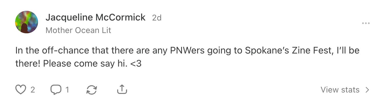 Meeting fellow Substacker Sabrina/Beargrass at the Spokane Zine Fest